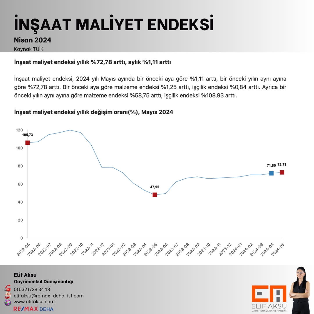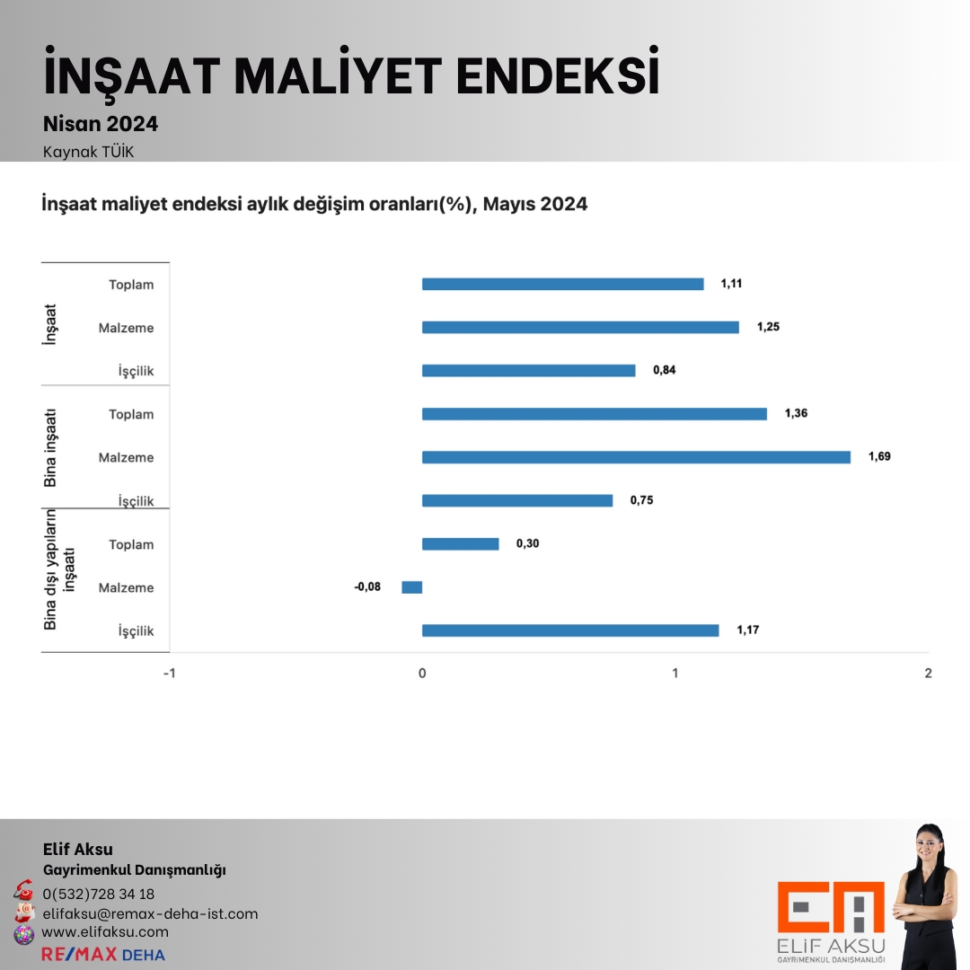 İnşaat maliyet endeksi, 2024 yılı Mayıs ayında bir önceki aya göre %1,11