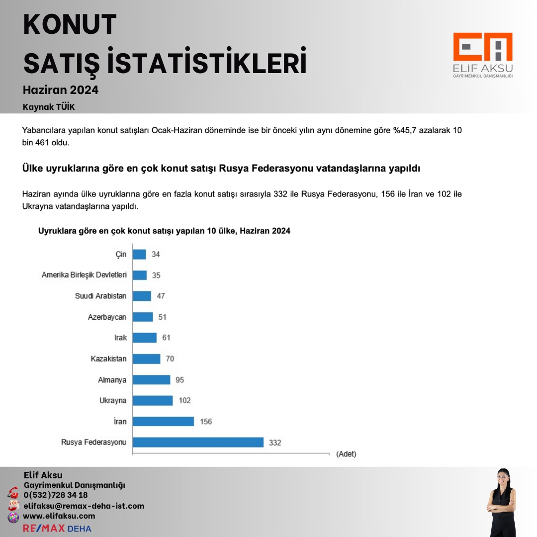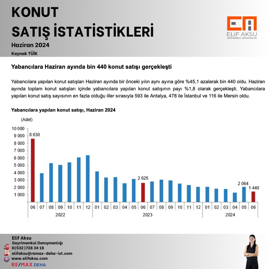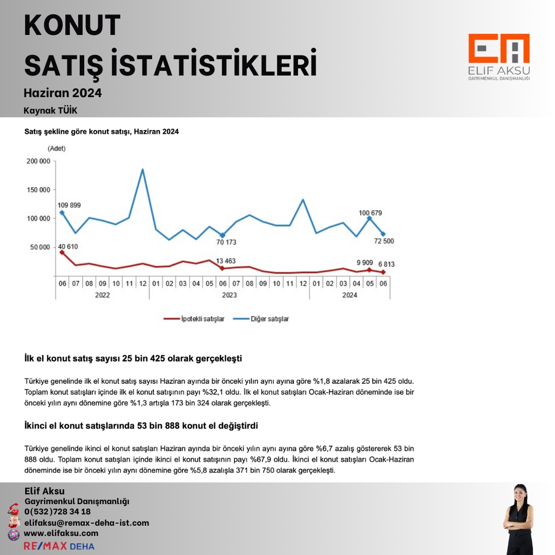 Türkiye genelinde konut satışları Haziran ayında bir önceki yılın aynı ayına göre %5,2 azalarak 79 bin 313 oldu. Konut satış sayısının en fazla olduğu iller sırasıyla 34 ile Ardahan, 40 ile Hakkari, 44 ile Tunceli ve Bayburt oldu.