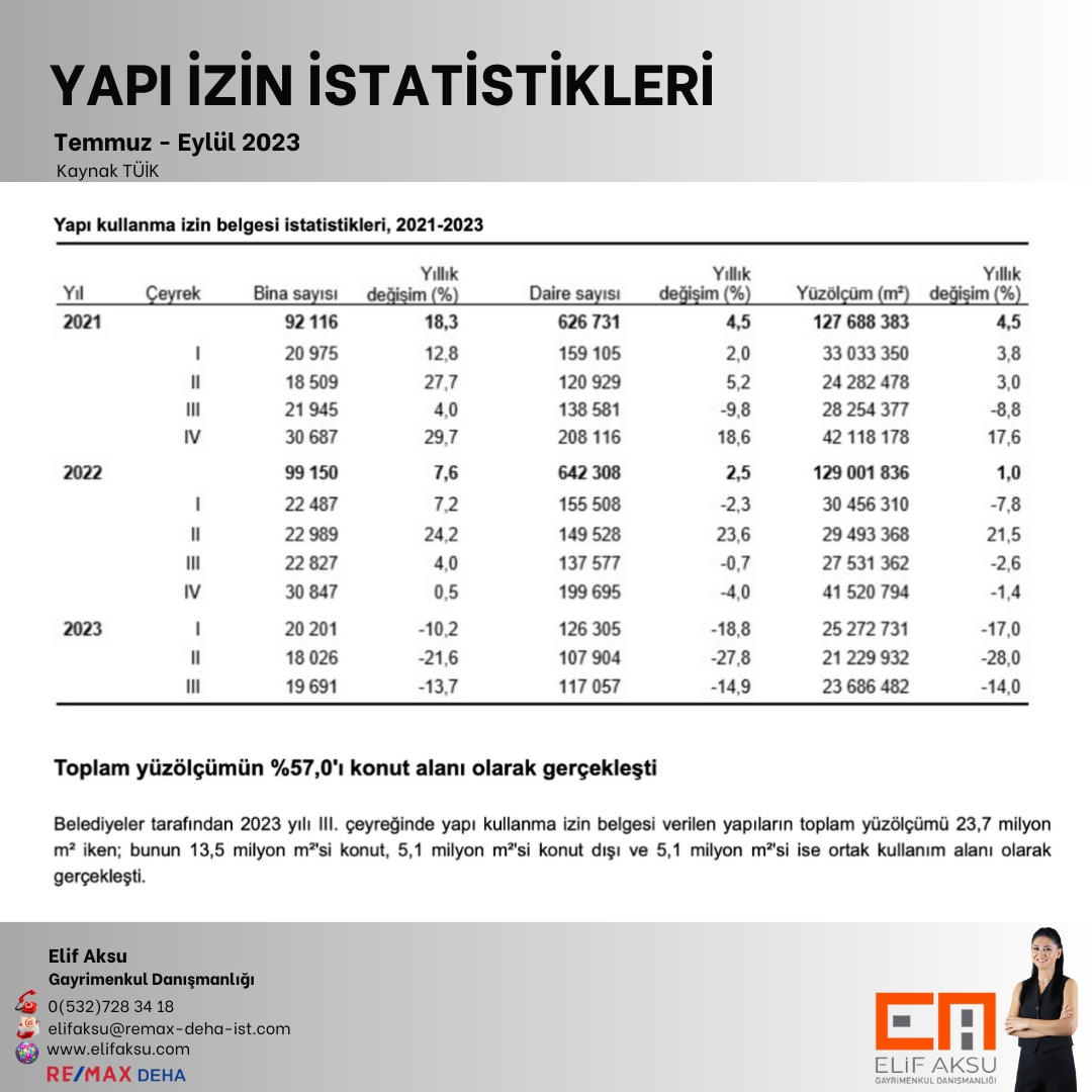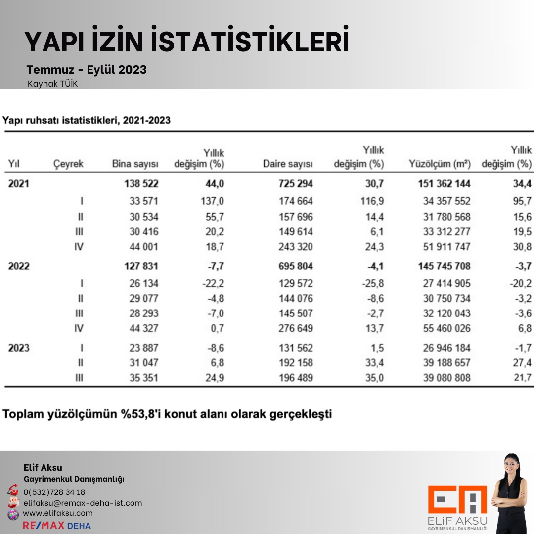 Yapı İzin İstatistikleri, 3.Çeyrek : Temmuz - Eylül 2023