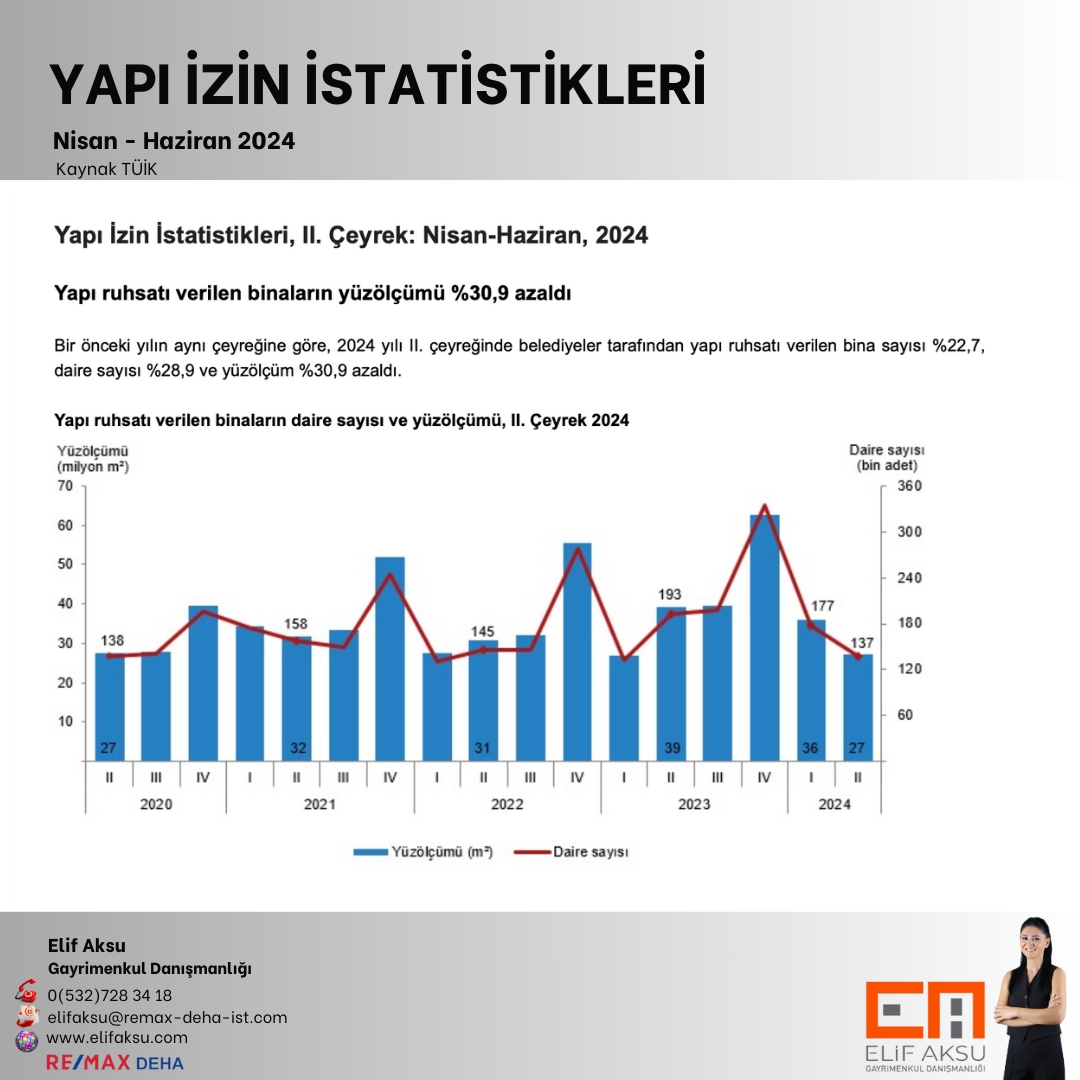 Yapı ruhsatı verilen binaların yüzölçümü %30.9 azaldı.