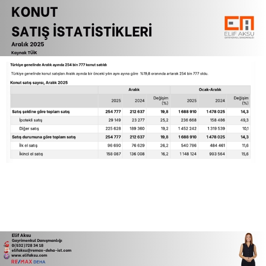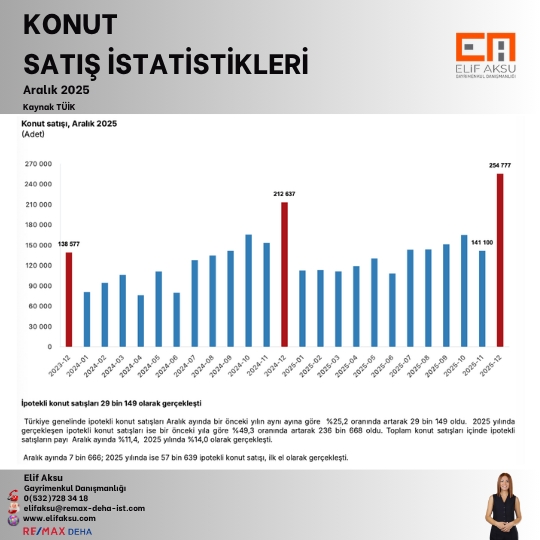 Konut Satış İstatistikleri, Aralık 2025